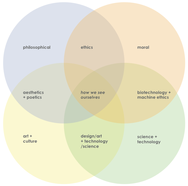 My research began with four main domains concerning organic life and artificial intervention: philosophical, moral, art + culture, and science + technology (see Fig.1). The philosophical domain mainly directs investigation towards metaphysical discussions on the organic and the artificial throughout history. The morality section looks into ethical debates in Posthumanist and biopolitical theory concerning the technological organism. The areas of science and technology focuses on understanding life materials, past and present, as well as the technologies applied in manipulation of life forms. Art and culture examines the use of living organisms in artistic practice, and questions the meaning behind such interventions into the life process.